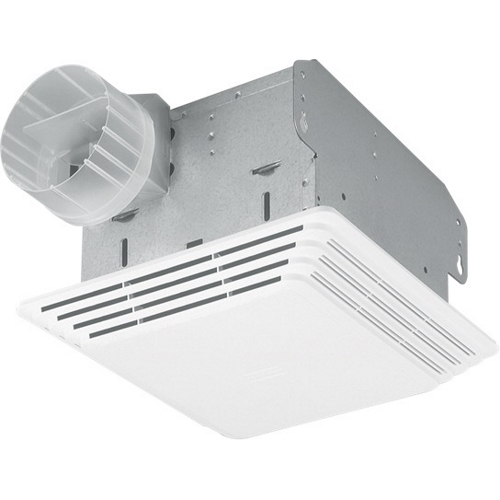 Broan® Ventilation Fan, 110 cfm Flow Rate, 4 in Diameter Duct, 120 VAC, 1.3 A Current/Amps, 4 sones , 10-5/8 in Grille Length, 11-1/8 in Grille Width, Polymer Grille, 8 in Housing Length, 8-1/4 in Housing Width, 5-3/4 in Housing Height, Steel Housing Material, Ceiling Mounting, No Humidity Sensing, No Motion Sensing, White, Domestic