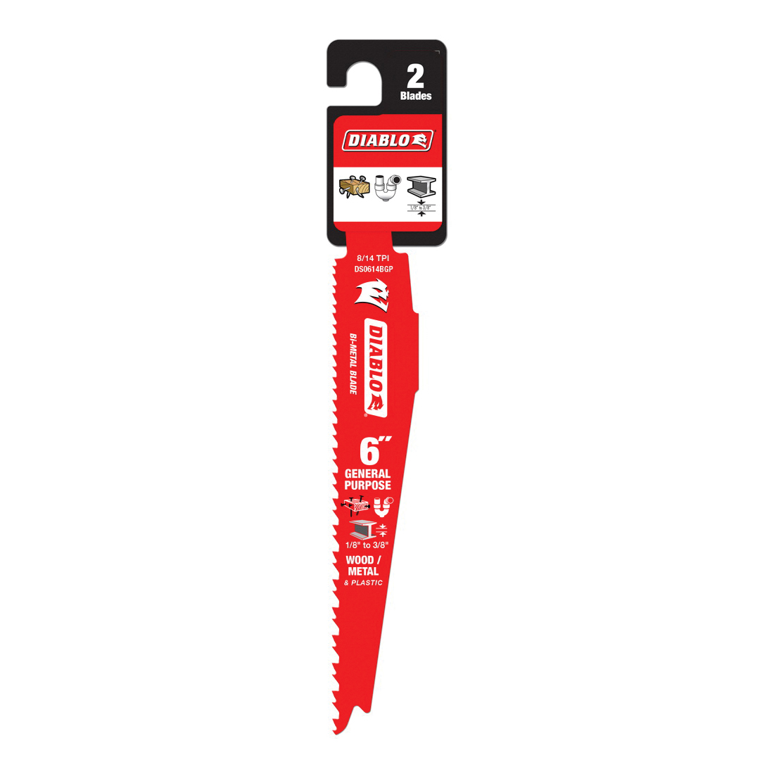 Diablo®'s reciprocating saw blades are specifically designed for maximum performance in general purpose (nail-embedded wood and metal) applications. These high performance blades feature bi-metal technology that delivers up to five times longer life of standard blades on the market. Diablo®'s patented variable tooth technology provides faster cuts with less vibration.