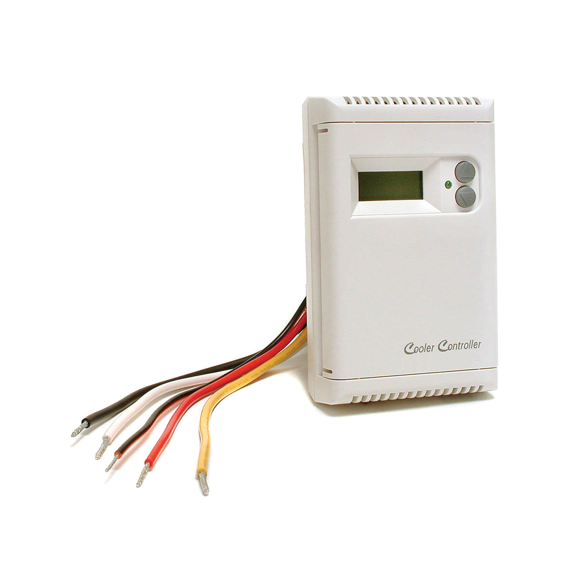 Designed for use with 1/3, 1/2, 3/4 and 1 hp, 1-speed and 2-speed, 115 V and 230 V cooler motor. Mounts in either a standard single 2 x 4 in or double 4 x 4 in gang electrical box. Unit automatically resets to 77 deg in the event of a power failure.