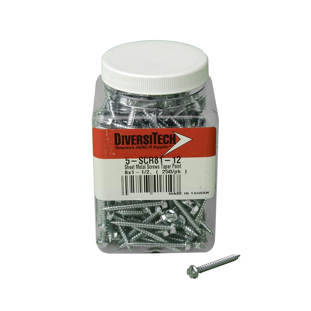 Diversitech Screw, Measurement System: Imperial, #8 Thread, 1-1/2 in Overall Length, Sheet Metal, Tapered Point