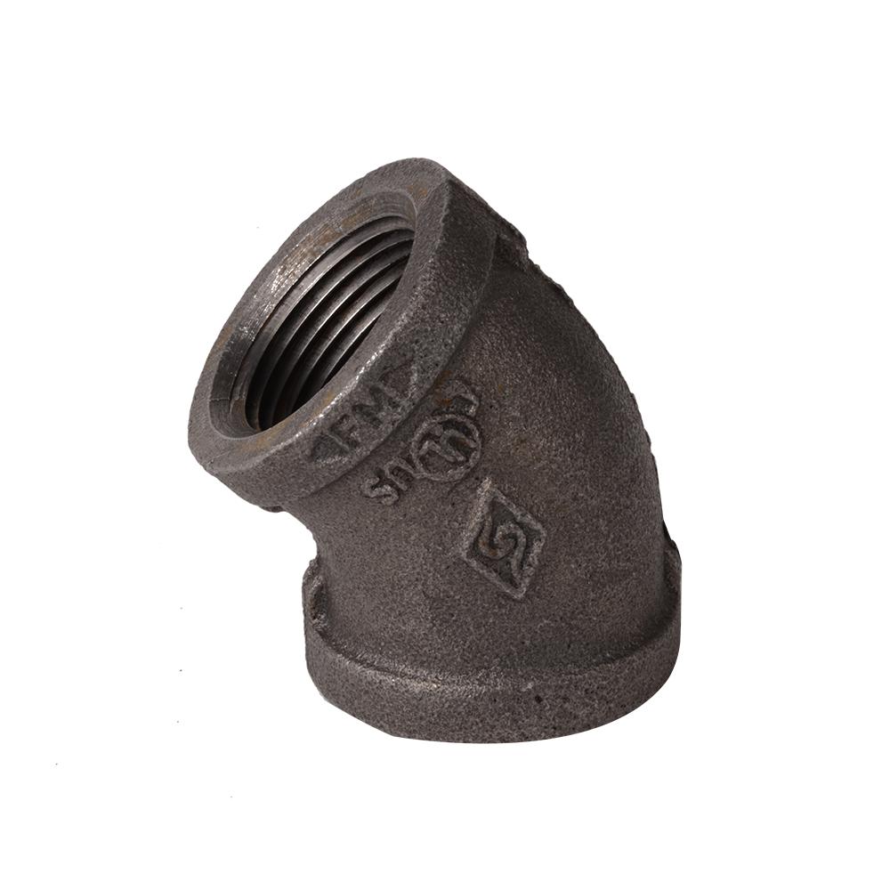 Diversitech Elbow, 45 deg Elbow Fitting/Connector, 1 in Nominal, Thread End Style, 150 lb Pressure Class, Malleable Iron, Black, Domestic/Import: Import
