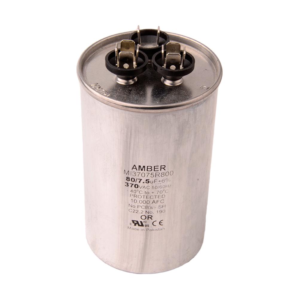 Diversitech Motor Run Capacitor, Dual, 80/7.5 uF, 370 VAC, Round, Metal Case, 50/60 Hz, +/- 5% Tolerance, 4.31 in H Case, Import