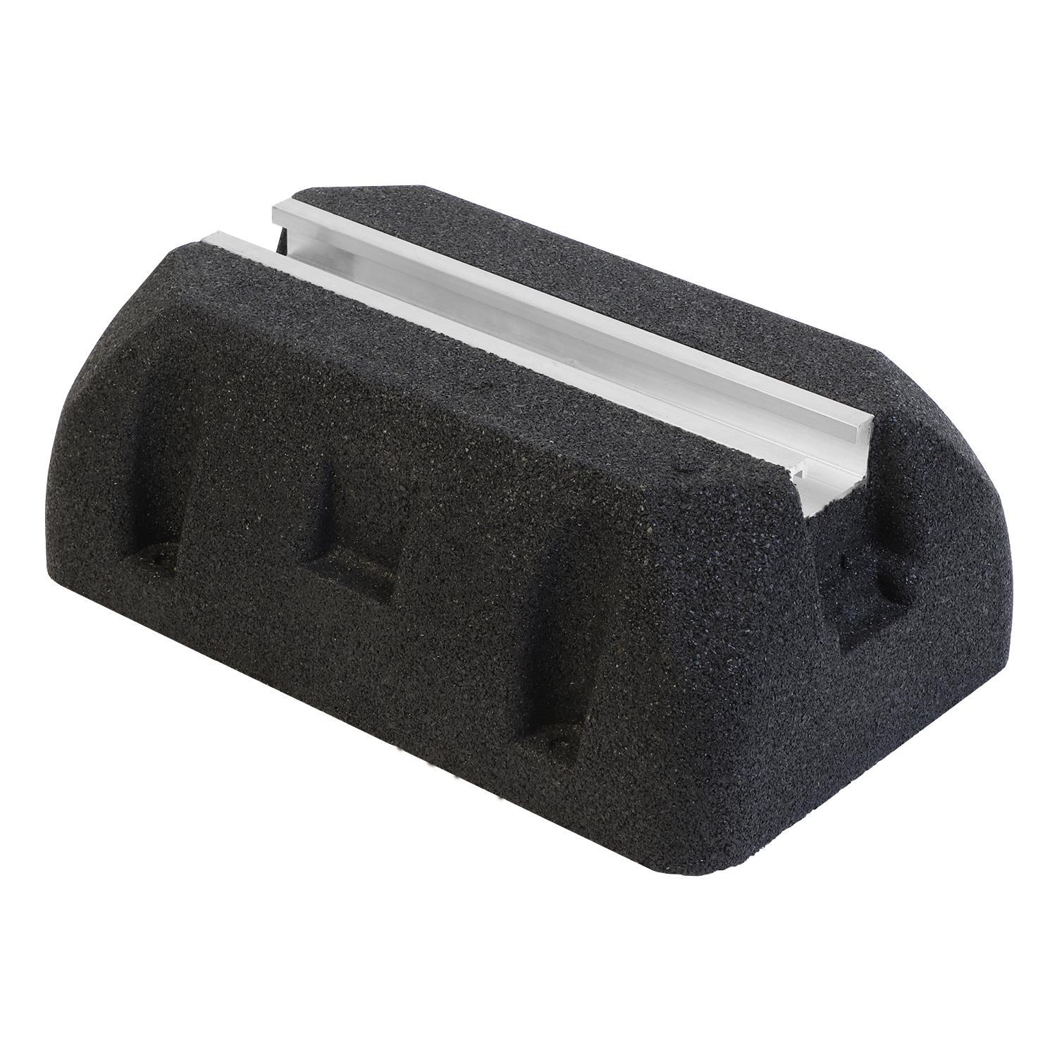 The Hef-T-Foot™ FF-250-S is a 9.8 in. rubber base with strut inserts that is used to support small pipework and runs of cable tray. The FF-250-S dimensions are 9.8 in. L x 7.28 in. W x 3.94 in. H. The extruded aluminum strut insert dimensions are 9.8 in. L x 1.6 in W. x .83 in. H and are attached to the rubber with industrial adhesive.