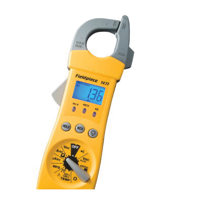 The SC77 is one of our most popular digital multimeters for a reason. It has virtually every parameter for electrical and thermal HVACR testing in one meter. This auto ranger includes a host of safety features including a high-voltage LED and beeper, a continuity warning, push button non-contact voltage (NCV), a lead holder with detachable leads, and alligator probe tips for easy one-handed testing. As far as ranges go, it has temperature, capacitance, uA DC for flame diode tests, and everyday electrical ranges for HVACR. Not to mention technicians tell us it is one of the most durable meters in the industry.