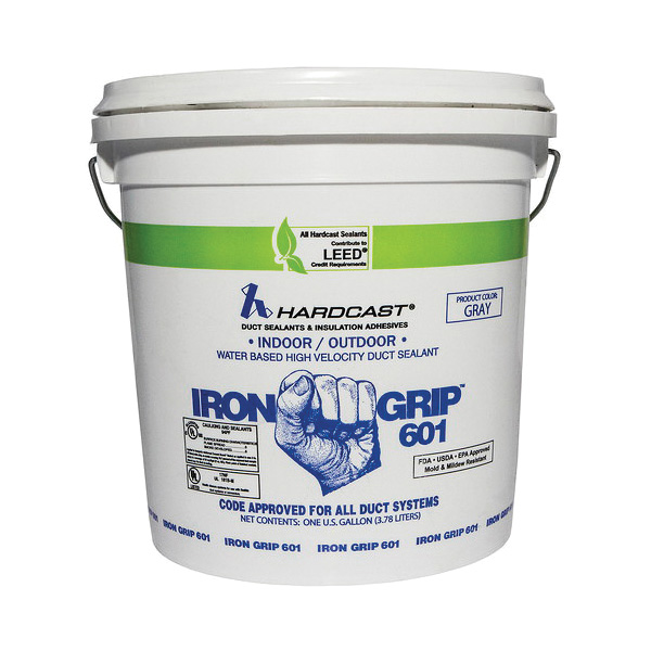HARDCAST® Iron-Grip® 601 Duct Sealant, Premium, Pail Container, 1 gal Container, Synthetic Latex/Water Base, 48 hr Drying, Gray, -20 to 200 deg F, 49 g/L VOC, Applicable Materials: Metal Duct and Fiberglass Duct Board