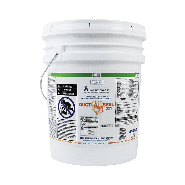 HARDCAST® Duct-Seal™ 321 Duct Sealant, Pail Container, 5 gal Container, Synthetic Latex/Water Base, 48 hr Drying, Gray, -20 to 200 deg F, 93 g/L VOC, Applicable Materials: Metal Duct and Fiberglass Duct Board