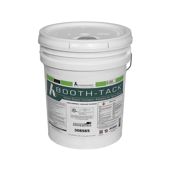 HARDCAST® Booth-Tack™ Water Based Insulation Adhesive, Quick-Tack High-Yield, Pail, 5 gal, 10 lb/gal Net Weight, Composition: Polymer, Ethyl Acrylate and Methacrylic Acid, De-Foaming Agent, Ammonia, Polymer, Vinyl Acetate, Vinyl Acrylic, Clay Compound, Limestone, Methanol, 4, 4-Dimethyloxazolidine, Carbamic Acid Mixture Polycarboxylate Salt, Latex, Gray, Slight Ammonia, -20 to 200 deg F, 8 to 9
