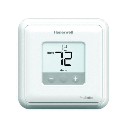 Honeywell Home Thermostat, Series: T1 Pro, Non-Programmable Thermostat, 32 to 102 deg F Control, 1 deg F Differential, Relay Switch, R, RC, C, W, O/B, Y, G Terminal Designations, Heat/Off or Cool/Off System Switching, Auto/On Fan Switching, 1 Stage, Up to 1 Stages Heat, Up to 1 Stages Cool, 5 to 90% RH Non-Condensing Humidity, Small Display/Soft Key Control Display, 20 to 30 VAC, 0.02 to 1 A Heat/Cool Running Full Load, Battery/Hardwired Power Source, UWP Mounting, White, 4-1/16 in W x 1-3/32 in D x 4-1/16 in H Dimensions