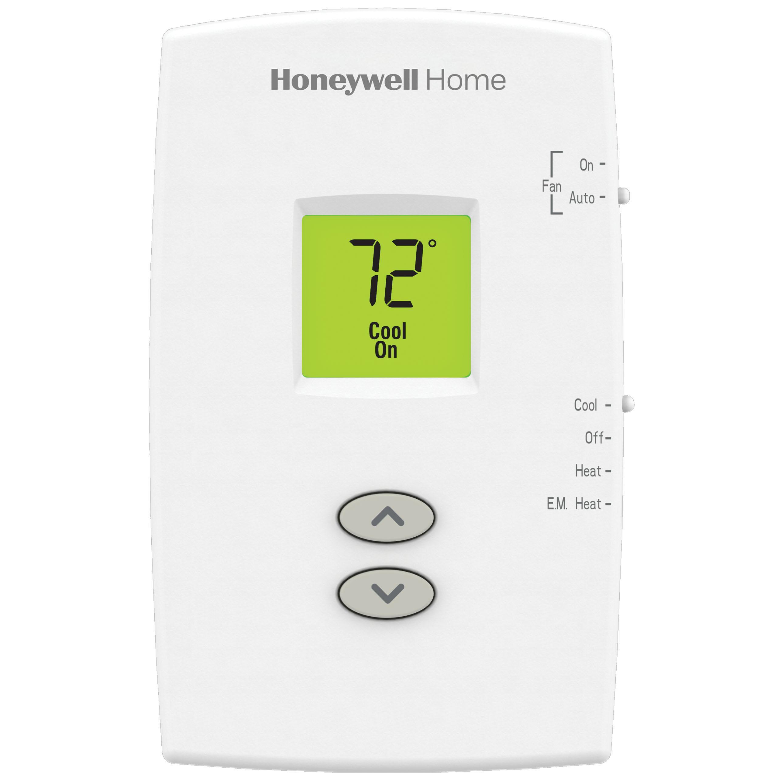 Honeywell Home Thermostat, Series: Pro 1000, Non-Programmable Thermostat, R, C, Y, AUX/E, G, O, B Terminal Designations, Heat/Cool/Off System Switching, Auto/On Fan Switching, 2 Stage, 5 to 90 % Humidity, 1.32 sq-in Display, 24 to 30 VAC, Battery/Hardwired Power Source, Vertical Mounting, Premier White®, 2-7/8 in W x 1-1/8 in D x 4-11/16 in H