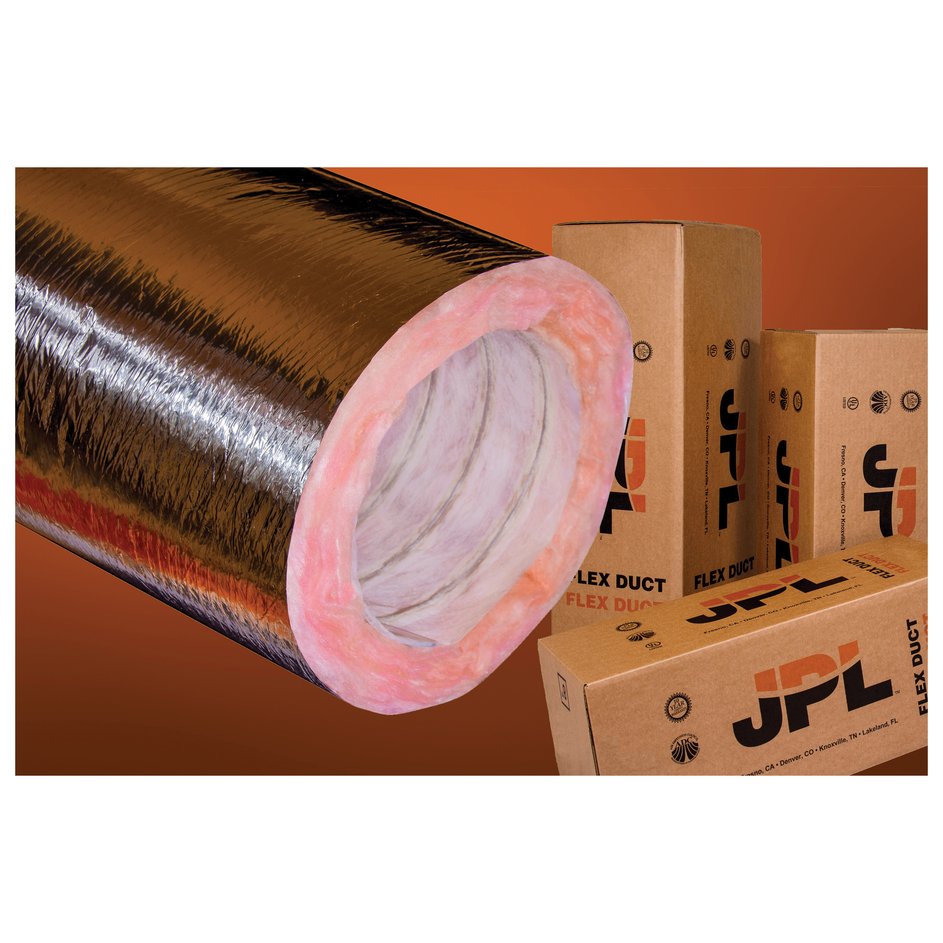 JPL® AMR25R8-06 Acoustic Flexible Air Duct, 6 in ID x 25 ft L, 4000 fpm Flow Rate, R8 Insulation, Metalized Reinforced Polyester/Non-Woven Fabric, Domestic