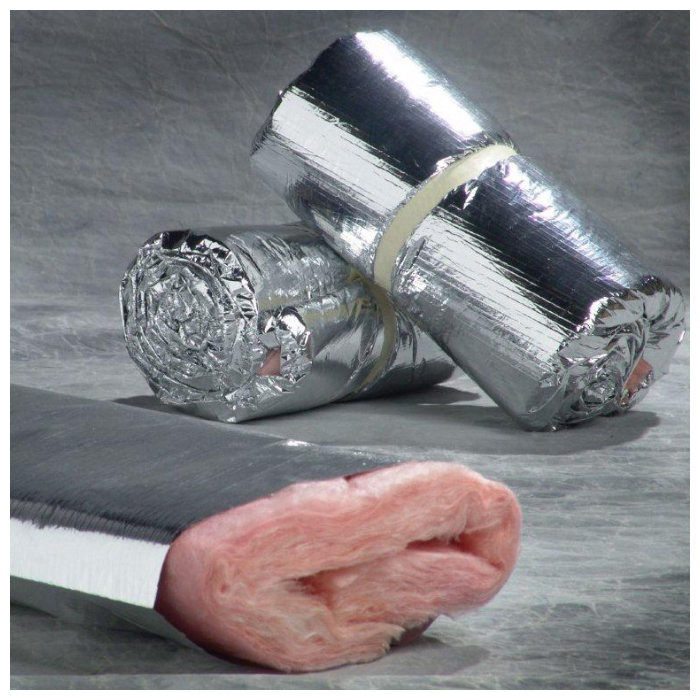 - Fiberglass insulation and metalized reinforced polyester vapor barrier material