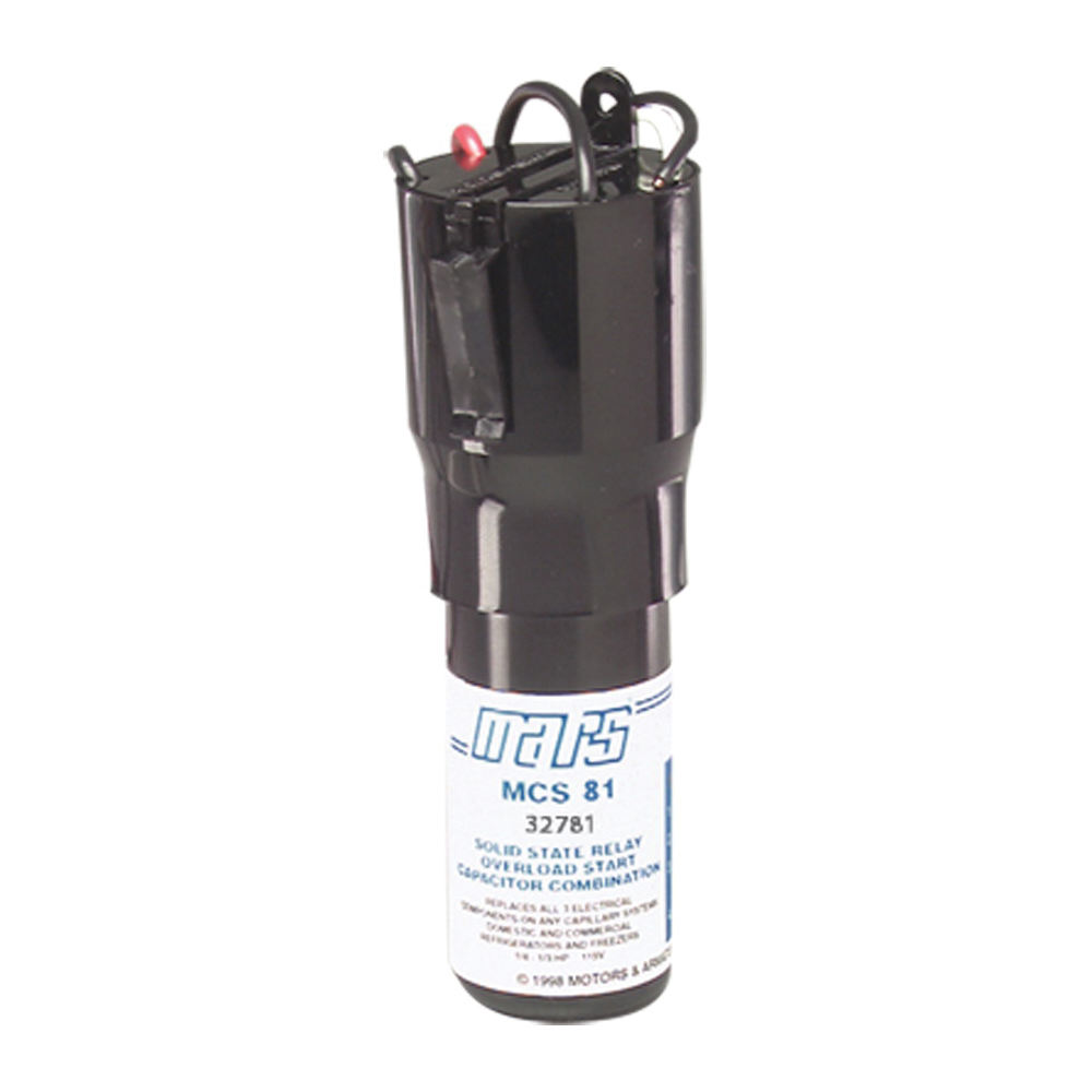 The MCS is a combination start relay, start capacitor, and motor overload. It is designed to replace those components on a 115 volt single phase refrigeration compressor installed on a capillary tube system. The MCS is factory wired and comes with a connection diagram on the product label for maximum convenience.