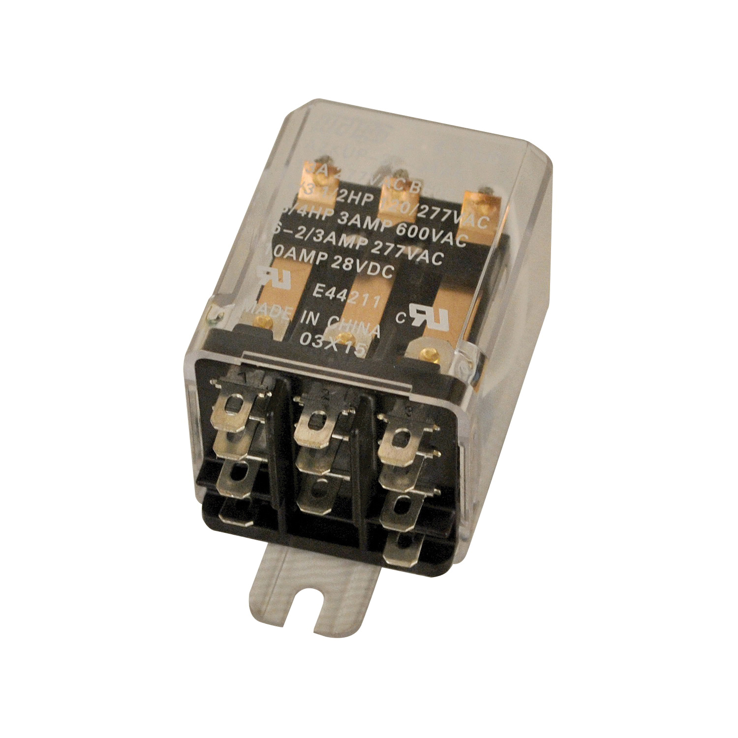 Mars® enclosed switching relays are heavy duty general purpose relays suitable for a variety of applications. They are commonly used in heating, air conditioning, vending machines, office machines, control panels and other general purpose applications. They are available in single pole, two pole and three pole models for either bracket or plug-in mounting. All Mars® enclosed switching relays are protected by a tough polycarbonate cover to keep out dust and dirt. Blade type terminals fit standard plug-in mounts plus allow use with 3/16 in quick-connect terminals or direct soldering.
