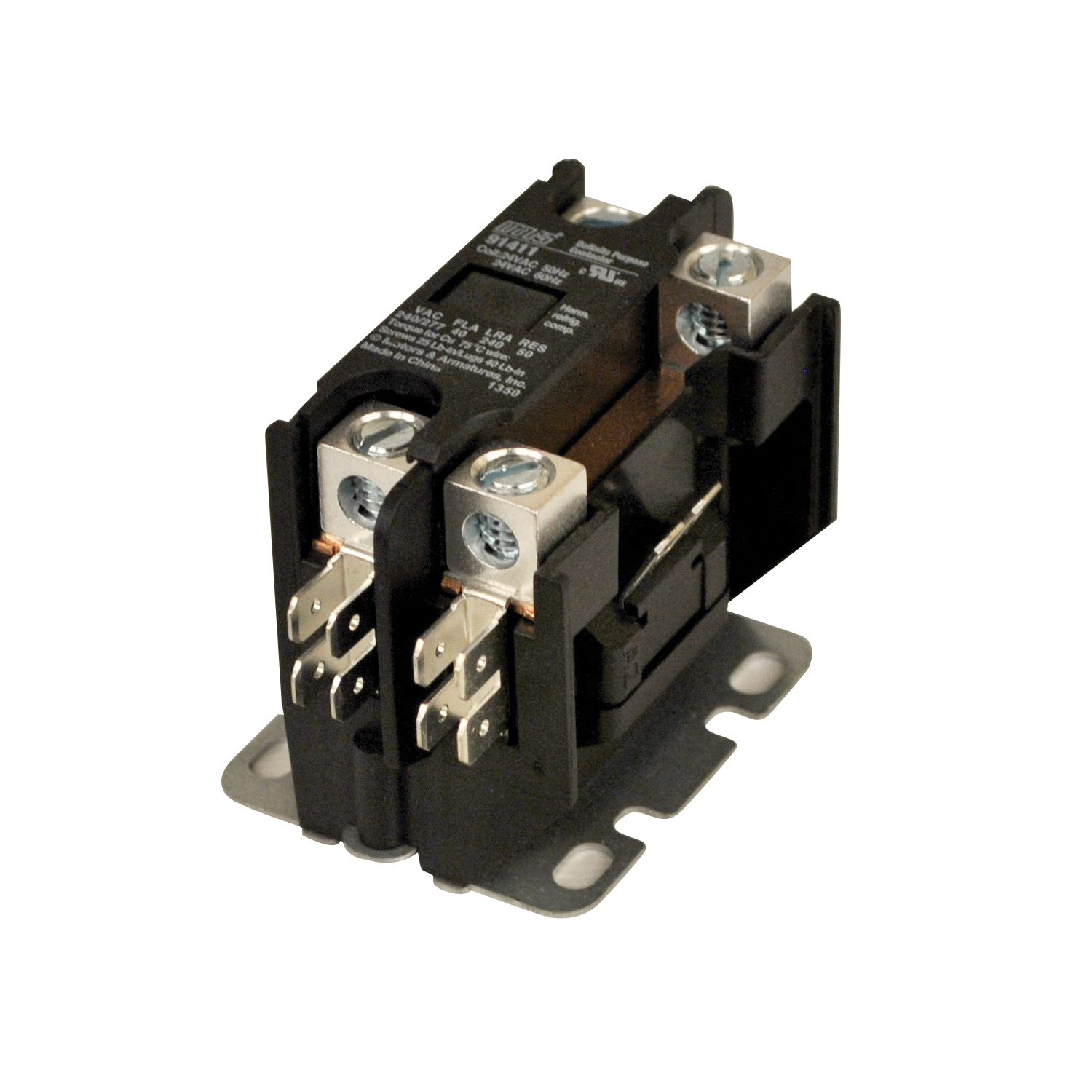 Mars® definite purpose contactors are designed for use on refrigeration, air conditioning, and electric heating systems. They are available in one pole with shunt (one and one half pole) configurations, from 30 thru 40 A. Mars® brand definite purpose contactors are also available in 2-pole models (30 and 40 A) and 3-pole models (30 through 75 A). The universal mounting base allows replacement of most contactor brands. Straight-thru wiring and small size speeds installation.