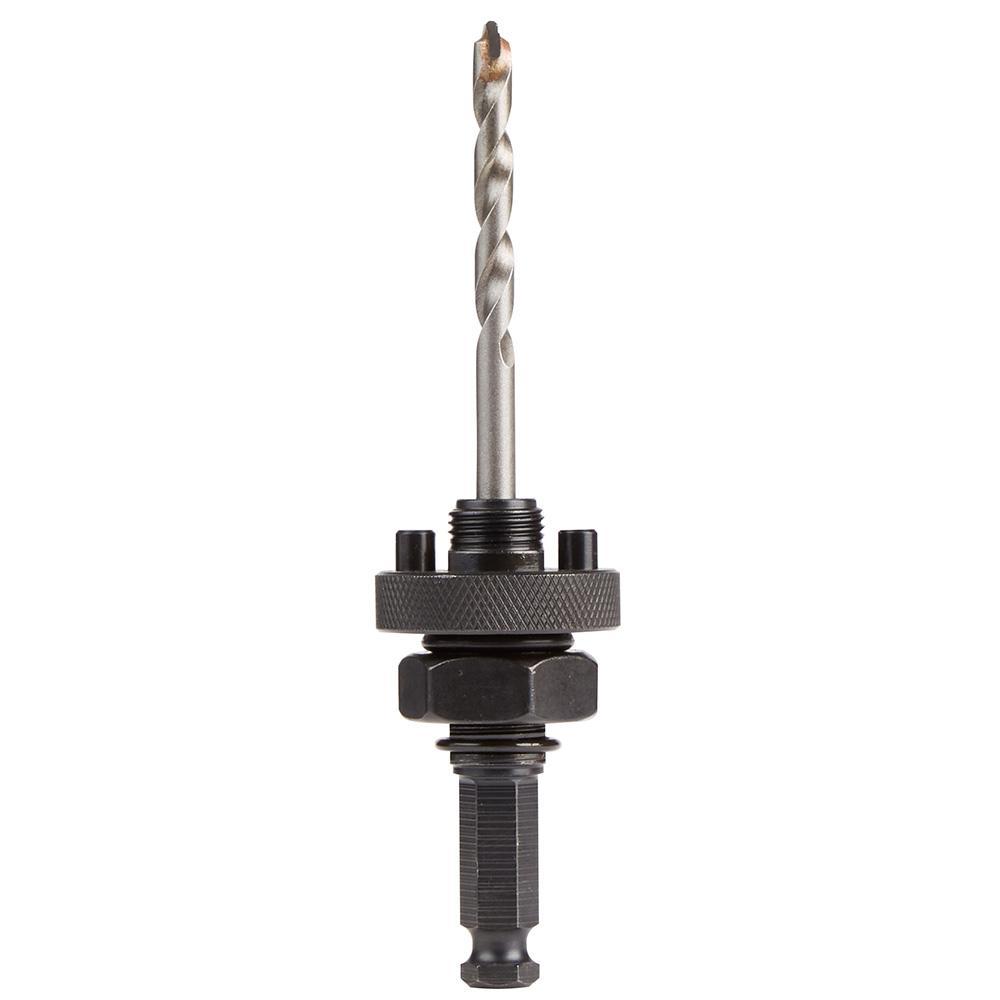 Milwaukee® BIG HAWG™ Hole Saw Arbor, 7/16 in Arbor, 3-Flat Shank, 1-3/8 in Diameter Hole Saw, 7/16 in Pilot Drill, 6-9/16 in Overall Length, Carbide Cutting Edge, Steel, Black/Silver, Applicable Materials: Wood