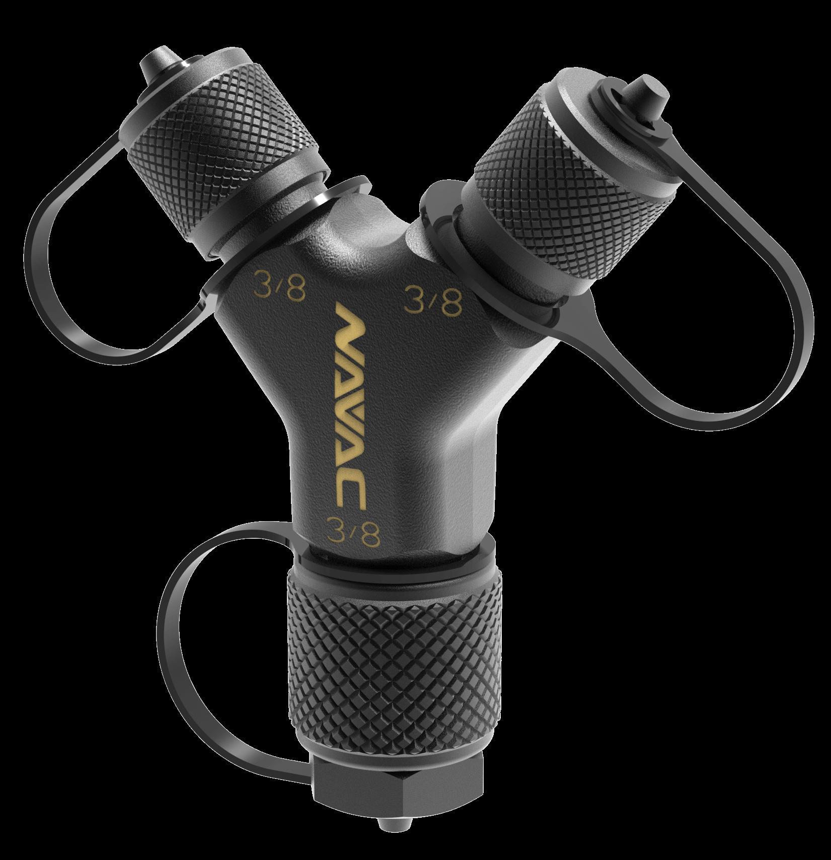 Navac, F1028, Rapid-Y Connection Fitting, 2 x 3/8 to 1 x 3/8 in Connection, Male to Female End Style, Brass, Black
