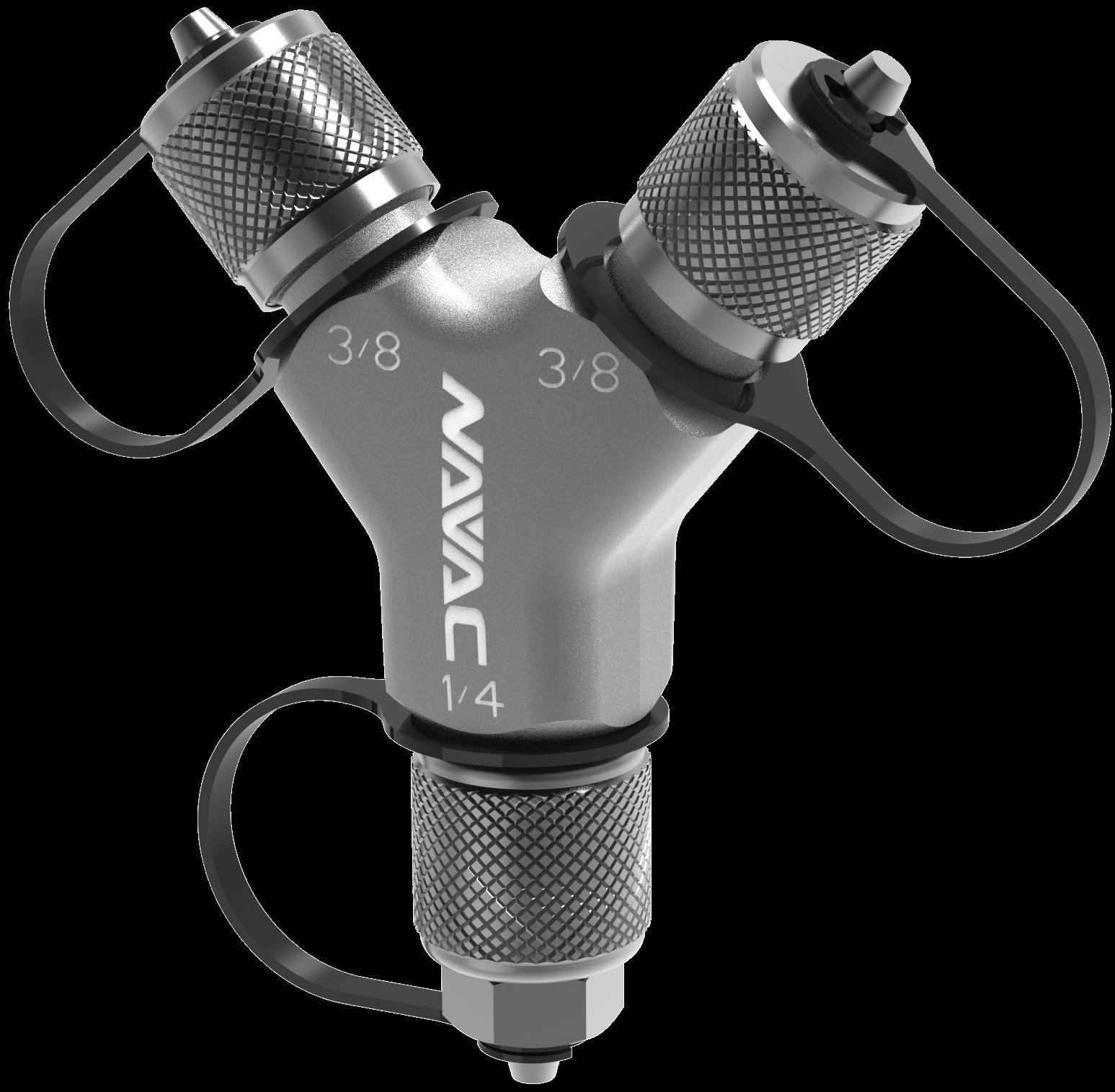Navac, F1029, Rapid-Y Connection Fitting, 2 x 3/8 to 1 x 1/4 in Connection, Male to Female End Style, Brass, Black