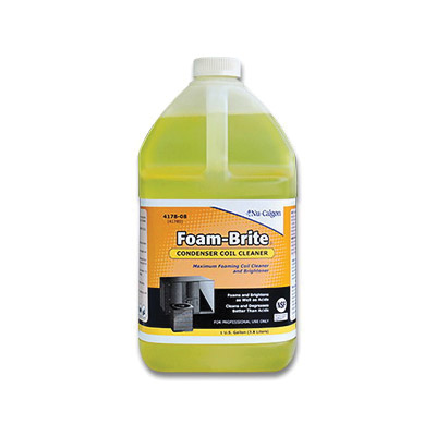 Foam-Brite® foaming power is incredible. It is a non-acidic, alkaline-based cleaner and brightener containing the best available biodegradable ingredients and a unique chelant/surfactant package to quickly penetrate and remove greasy soils and oxidation. Its high foaming formula helps lift greasy soils out of the coil, leaving finned coils clean and bright. It can be used to replace the more dangerous HF acid-based products for condenser coil cleaning because Foam-Brite does not contain any acids. For cleaning and brightening air cooled condensers, permanent filters and other finned heating and cooling coils. It is an alkaline based cleaner that does all that an acid will do without the danger of an acid. Do not use on evaporator coils. Not for indoor use.