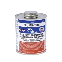 Oatey® PVC 2000 Series Plumb-Tite™ Medium Bodied Very Fast Set "Hot" Blue Cement is recommended for potable water, pressure pipe and DWV applications. It is formulated for wet conditions and/or quick pressurization and fast installations. Oatey products have earned the trust of plumbing professionals for over 100 years.