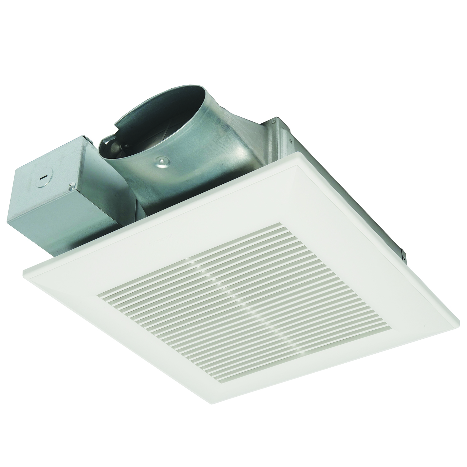 Panasonic WhisperValue® DC™ SmartFlow™ Ventilation Fan, 50/70/80/100/110 cfm Flow Rate, 4 in Diameter Duct, 120 VAC, 0.08/0.13/0.18/10 A, 60 Hz Frequency, 4.5/8.5/12.4 W Power, 13 in Grille Length, 13 in Grille Width, 10-1/4 in Housing Length, 10-1/4 in Housing Width, 3-3/8 in Housing Height, Steel Housing Material, Ceiling Mounting, Domestic/Import: Import