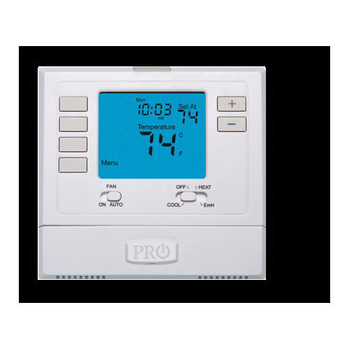 Pro1® Thermostat, Wi-Fi, Non-Programmable Thermostat, 44 to 90 deg F Control, RC, RH, C, O/B, G, Y, W Terminal Designations, Heat/Cool/Off System Switching, Auto/On Fan Switching, 2 Stage, 1 Stages Heat, 1 Stages Cool, 90% Non-Condensing Humidity, LCD Display, 24 VAC, Battery/Hardwired Power Source, Junction Box/Wall Mounting, White, 4.7 in W x 1.1 in D x 4.4 in H, Import