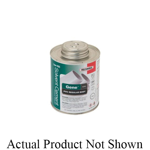 RectorSeal® Gene™ 404L Solvent Cement, Low VOC Regular Body, 0.25 pt Container, For Use With: PVC and Transition Joint, Clear, Pungent Odor/Scent, Composition: 20 to 40% Methyl Ethyl Ketone, Tetrahydrofuran, 1 to 20% Cyclohexanone, 5 to 20% Acetone, 1440 min Drying, 40 to 120 deg F