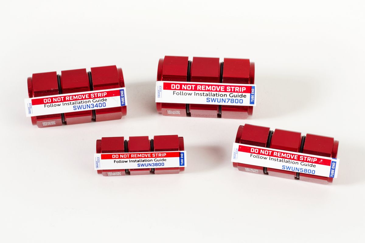 SmartLock, SWUN3800, Swage Union, Smartlock Fitting, Series: SWUN, 3/8 in Size, Aluminum Alloy, Red
